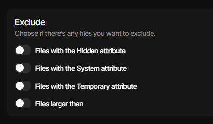 And I tick any of the options for System/Hidden/Temporary or define a maximum file size