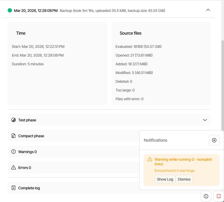 (2.2.0.3 - 2.2.0.3_stable_2026-01-06 on Win10) What is the purpose of the yellow alert box, indicating 4 warnings, when there are none reported in the actual log? Or do I need to look elsewhere? Then the “Show log” should link to the correct location.