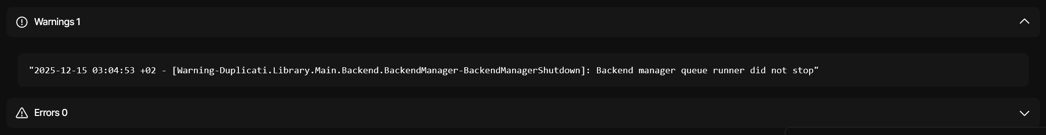 I mean, for example, I had Duplicati show a warning the other day, so I would have expected this to be mentioned in the Logs under About Duplicati, no?