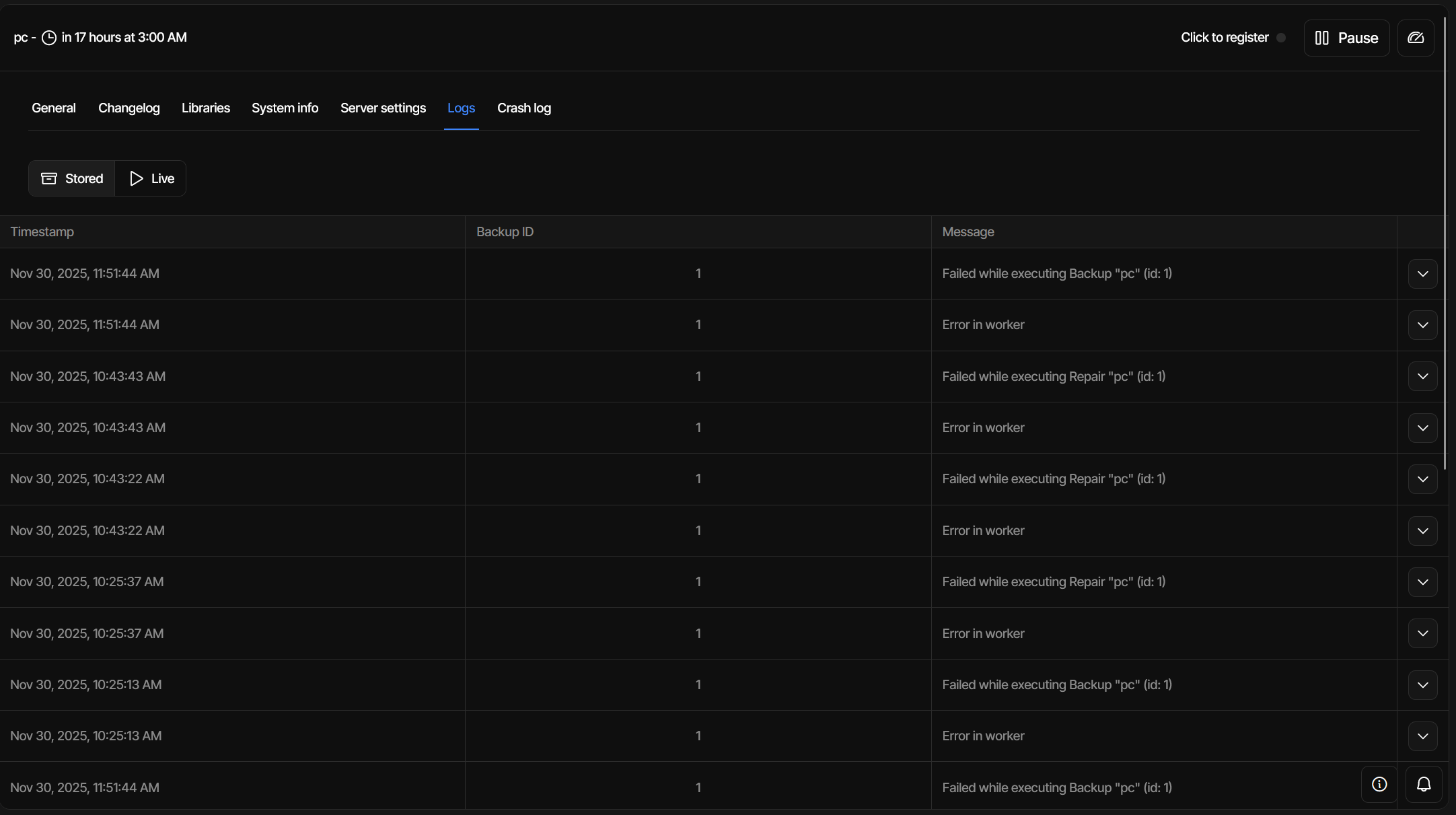 I went to the logs (/about/logs/stored), and noticed they are kinda old, end of Nov. 2025.