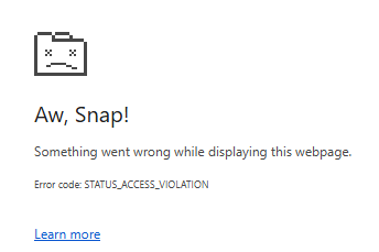 Turning off extensions or using Chrome’s incognito mode, does not prevent the page crash.