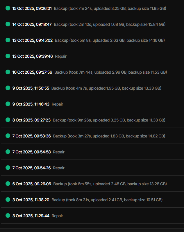 I thought I would provide some feedback here because for some months and different versions of the Canary releases I’ve had one server, running Fedora 42, every few days reporting this same issue for one of its backups. However, this backup is using an SMB share on a local Windows 2025 server as its destination, not an offsite one as being reported above.
