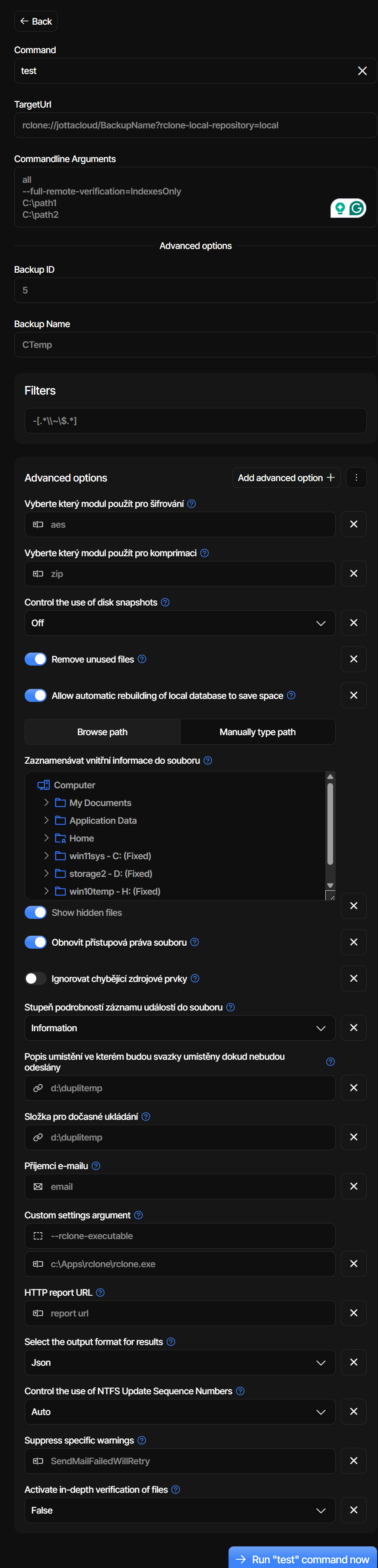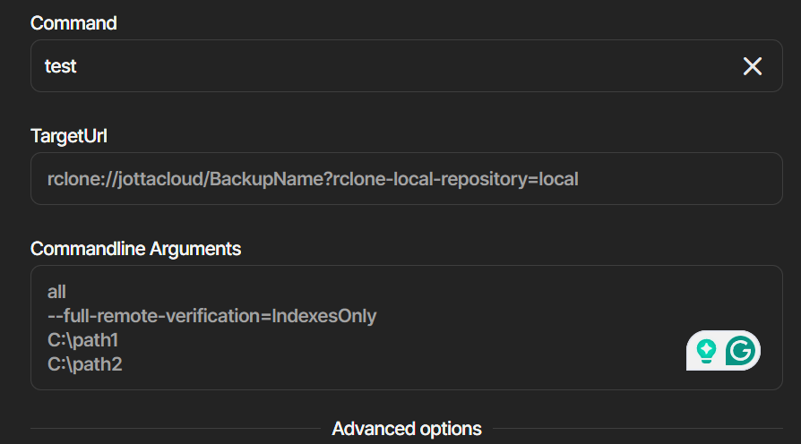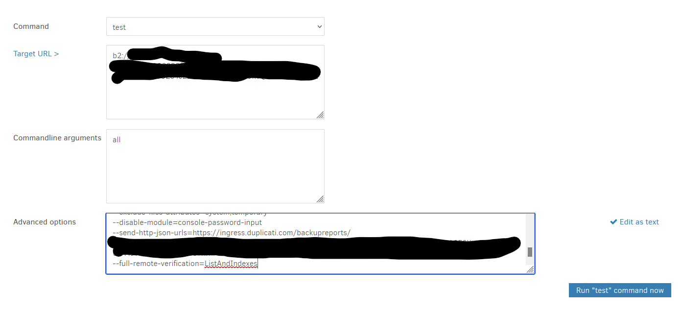 Usage: Duplicati.CommandLine.exe test <storage-URL> <samples>