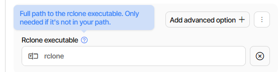 You then tell Duplicati where your rclone is. For example, on this PC mine is here: