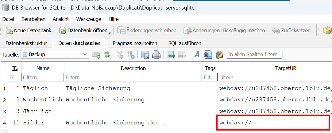 Now I have the same error message: Error while running Bilder. Dem Uri fehlt ein Hostname: webdav://