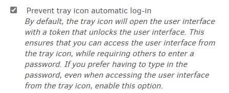 I can start a script, so arguments are possible. But I understood this option --webservice-disable-signin-tokensto make things even worse. I got the impression that the tray becomes useless if you disable the token sign-in.