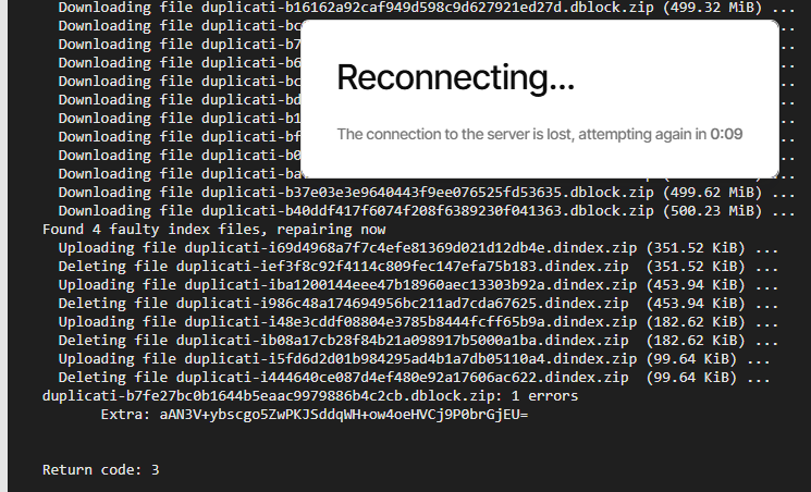 2025-09-13 15:33:29 -04 - [Warning-Duplicati.Library.Main.Operation.TestHandler-FaultyIndexFiles]: Found 4 faulty index files, repairing now