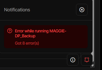 Oh, and when it happened the UI shows a notification but it can’t be cleared nor is there any link to take me to the log: