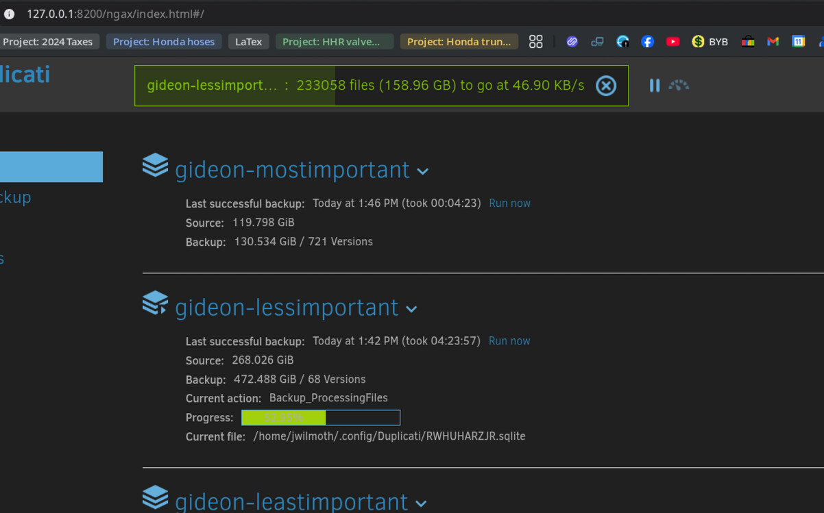 Originally, my backup jobs were configured to backup over SFTP. However, a few days ago, I updated them to backup over SMB instead. I was surprised when I saw the performance (transfer rate at the top of Duplicati web view) still extremely slow (< 50KB/s).