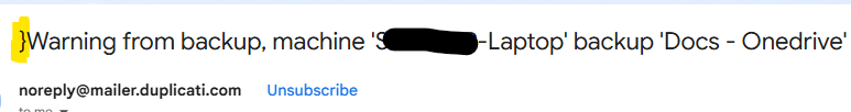 EDIT: submitted the issue on GitHub: Warning email notification has an extra bracket in the subject · Issue #6649 · duplicati/duplicati · GitHub