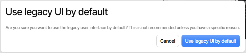 I agree that button text should always be imperative, e.g. “Use new UI” and “Use legacy UI”