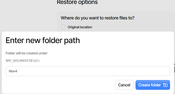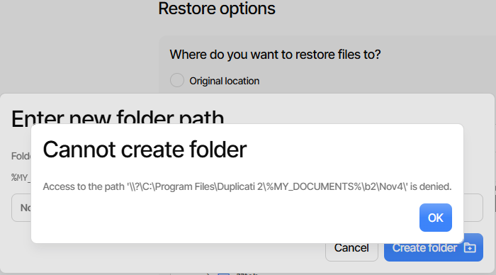 Trying to create a folder during Restore: